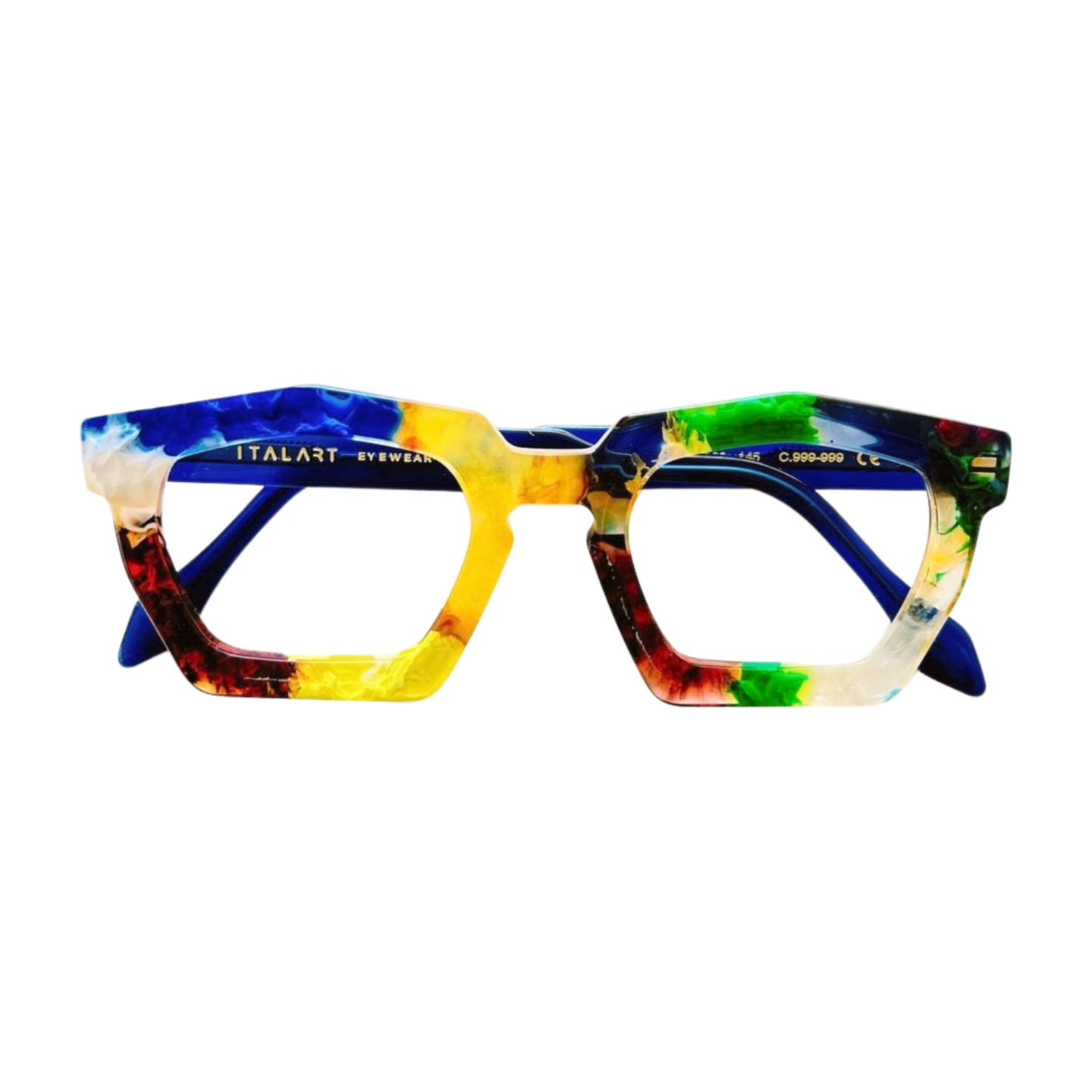 A fusion of artistry and individuality. The signature collection, ONE AND ONLY, epitomizes artisanal production at its finest. These eyeglasses are crafted from acetate sheets meticulously produced in-house, using proprietary technology unique to Italart. The result is a vibrant, colorful array of frames where no two pairs share the same color pattern. Each frame is a unique piece of art. With fashion-forward designs, these frames are for those who seek to stand out and embrace their individuality. This is a truly artisanal collection produced in very limited quantities, ensuring real exclusivity.